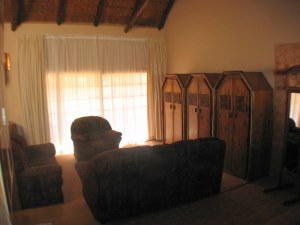 Die luxuriöse Safari - Lodge im afrikanischen Stil und Ambiente mit gesamt 12 Betten ( Aufbettungen sind möglich ) besteht aus sechs Deluxe 2-Bett-Zimmer mit TV, Minibar, Safe und Badezimmer. Suite 6 ( Honeymoon Suite ) ist mit einem Jacuzzi versehen. Dazu gehörig der Pool und überdachte Parkplätze.