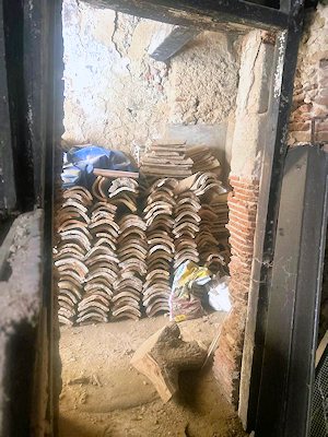 Wohnfläche gesamt über mehrere Etagen: ca. mit Wohnzimmer, Wohnküche, 2 Schlafzimmer, Badezimmer, 1 Balkon mit Blick über die Dächer und das Meer in der Ferne ( ca. 6,2 km ), sowie einen bepflanzten romantischen Innenhof aus Naturstein, zudem eine alte Steinkellerei, ein großes Garagengewölbe ideal als Lager, Atelier oder Werkstatt und einen romantischen Innenhof