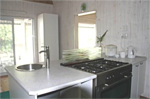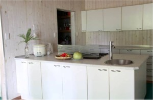 Küche der Villa mit 30 m² / Whirlpool rostfreier Stahl / 5 Flamen-Gasherd / rostfreie Heißluft Bratröhre / Sanyo Mikrowellenofen