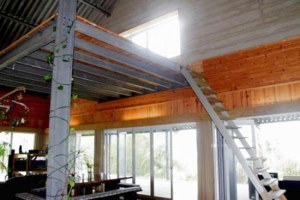 Wohnzimmer im “Loft Stil” mit 96 m² und einer Empore von 16 m² und 4 x 3 m Aluminiumschiebefenster