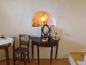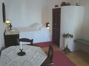 Apartment bestehend aus Wohnraum ( 2 Einzelbetten gemauert ) und Schlafzimmer ( Doppelbett gemauert ) getrennt durch einen Türbogen und Fenster im traditionellen Inselstil. Kitchenette im Wohnraum, Dusche/WC. Wohnfläche 33 m², Terrasse 9 m².