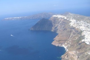 Auf der zweiten, mittleren Ebene befindet sich das in den Hang gebaute Haus mit einer großen Terrasse. Das Apartment besteht aus Wohn- und Schlafraum, Küche und Dusche/WC auf 56 m² und einem Patio mit 9 m². Die Terrasse, der Mittelpunkt der Anlage, mit einem nach 3 Seiten offenen Ausblick auf ganz Santorin hat eine Gesamtgröße von 68 m².